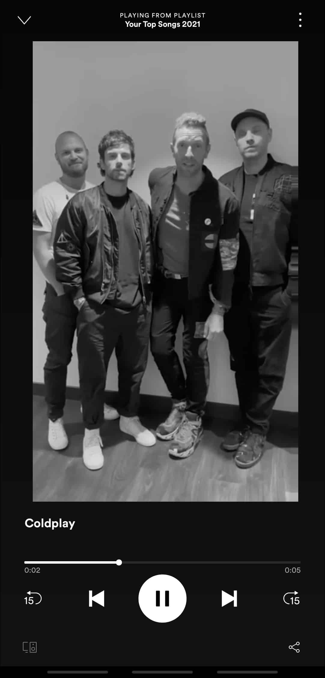 Spotify has something brand new in their Wrapped 2021 edition – artist videos. Scroll through your playlist to find a video button (if on desktop) or a bridge in the playlist consisting of the artist’s name with ‘2021 Wrapped’ below it, the duration of the video, and a couple of buttons.