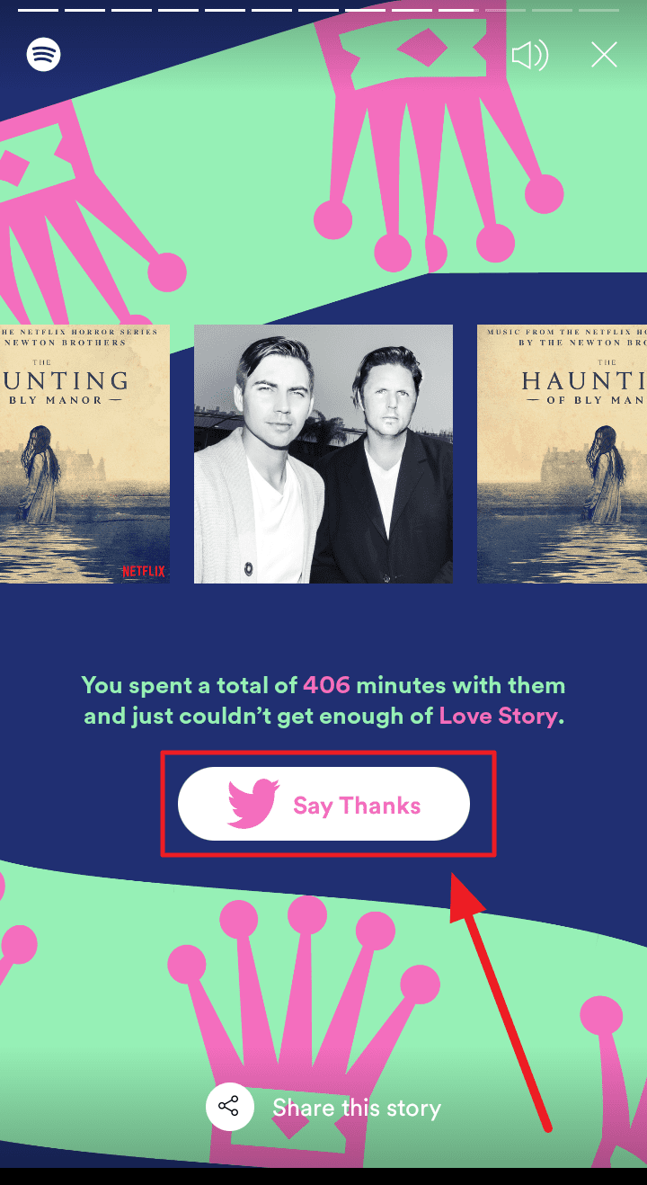 Almost all slides on Spotify’s Wrapped stories are shareable. Simply tap the ‘Share this story’ button at the bottom of the slide to open your sharing options and further share the chosen story.