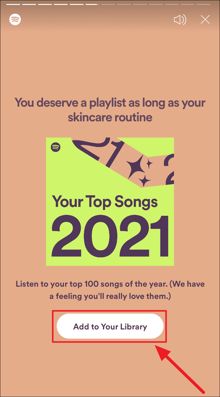Hit the ‘Add to your library’ button to instantly save your Spotify Wrapped playlist to your library for future reference.