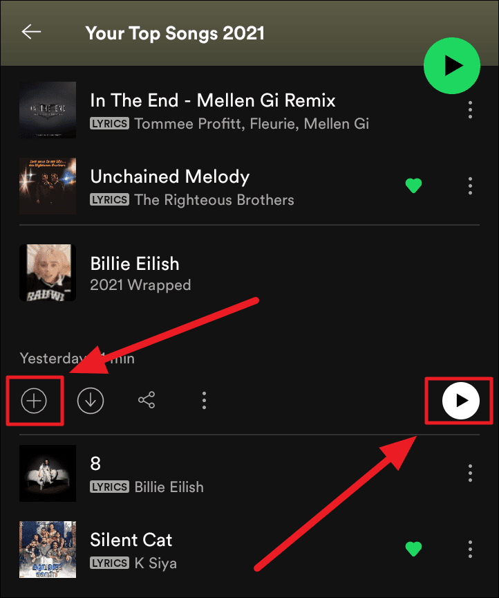 Tap the ‘Your Top Songs 2021’ block right next to your Wrapped story, below ‘Your 2021 in review’, to start jamming to your favorite tracks of 2021.