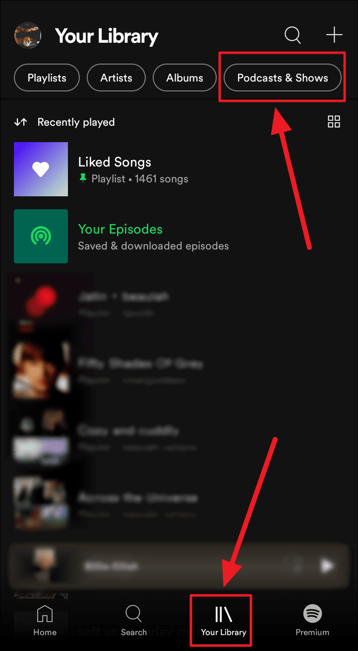 To find the newly saved video in your episodes, click the ‘Library’ button to the bottom right of the screen to reach ‘Your Library’. If you don’t see it on this screen, click the ‘Podcasts & Shows’ tab to find it.