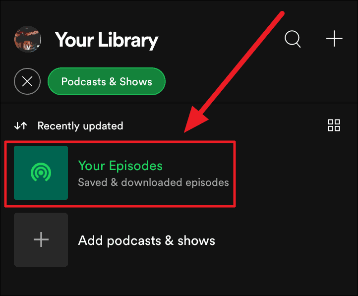 You will now see ‘Your Episodes’ under ‘Podcasts and Shows’. Click it to find the recently added artist video. Irrespective of whether you save or download it, you will find it here.