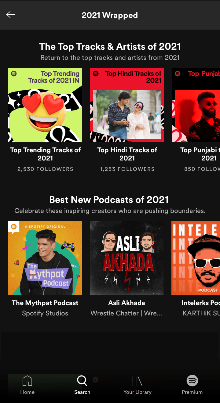 Apart from a Wrapped curation for you, Spotify also releases ‘Wrapped’ for other genres like podcasts, albums, artists, etc., on a bigger level – globally or locally.