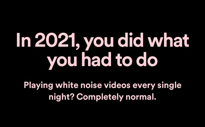 Spotify walks the user through a personalized cinematic experience where the user is the star of the show, and the movie, is, well, 2021. This is a hypothetical fantasy, nonetheless. A blissful walk through your very own musical, drama or action flick, comedy, love story, any film depending on your musical history on Spotify.