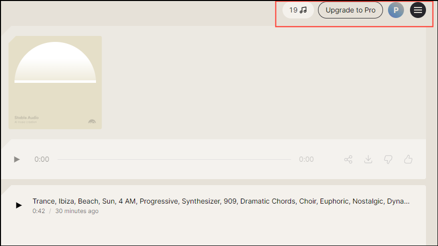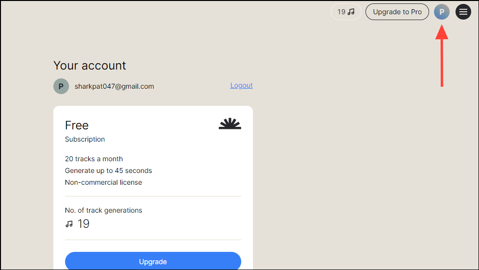 - The option next to the upgrade button shows details of your account on the Stable Audio AI platform. Clicking it will let you know about your current plan and what all it offers.