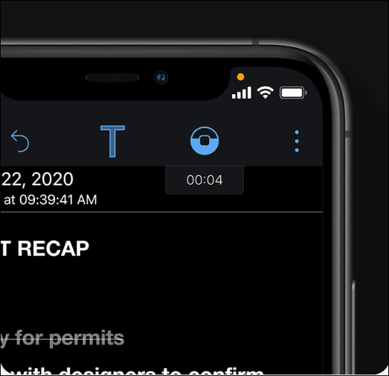 The recording indicator is a small orange or yellow-ish (mustard, really) dot that will appear at the top right corner of your iPhone screen whenever an app is using your microphone or camera. So, no app will be able to use your camera or microphone without your knowledge anymore.
