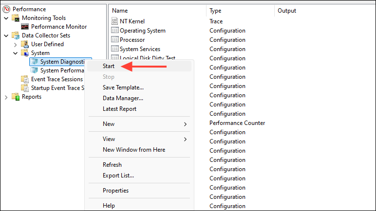 - Right-click on 'System Diagnostics' and click on 'Start' to begin the diagnosis.