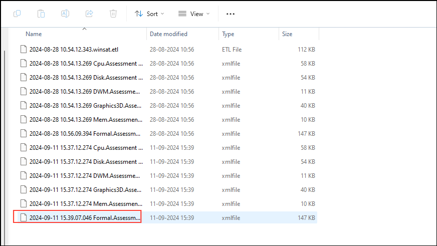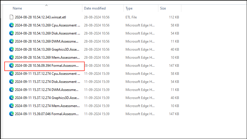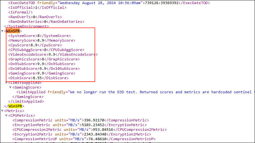 - Open the 'Formal.Assessment (Recent)' WINSAT.xml file using Microsoft Edge or any similar application.