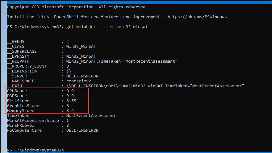 - You can also use other commands in Command Prompt to get specific WEI scores, such as