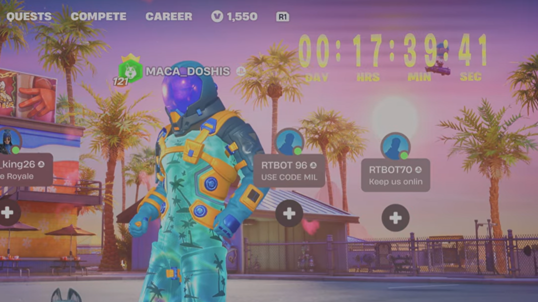 Quick answer: The lobby countdown currently tracks Power Hour events that run for 60 minutes on select days, offering increased XP and special gameplay modifiers. A separate timer counts down to the end of Chapter 7 Season 1 on March 19, 2026.