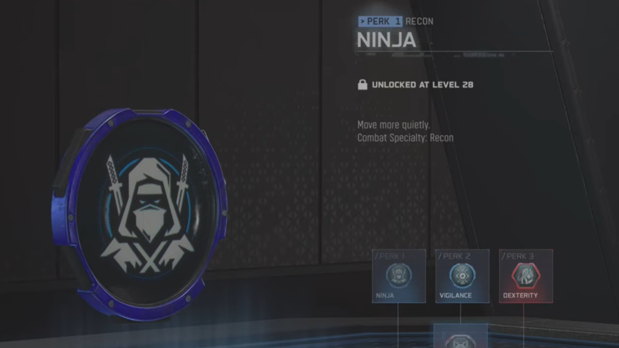 Ninja sits at level 53. It quiets your own steps and helps you better separate enemy audio from your own movement. In respawn modes with constant chaos, Ninja is nice to have, but not mandatory. In Search and Destroy and other one‑life modes, it is close to a requirement.