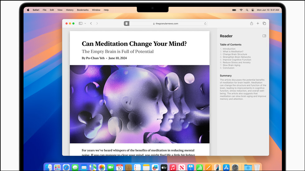 - The re-designed Reader mode in Safari can generate summaries and tables of contents for articles.