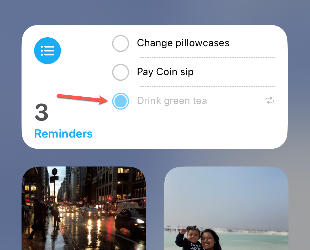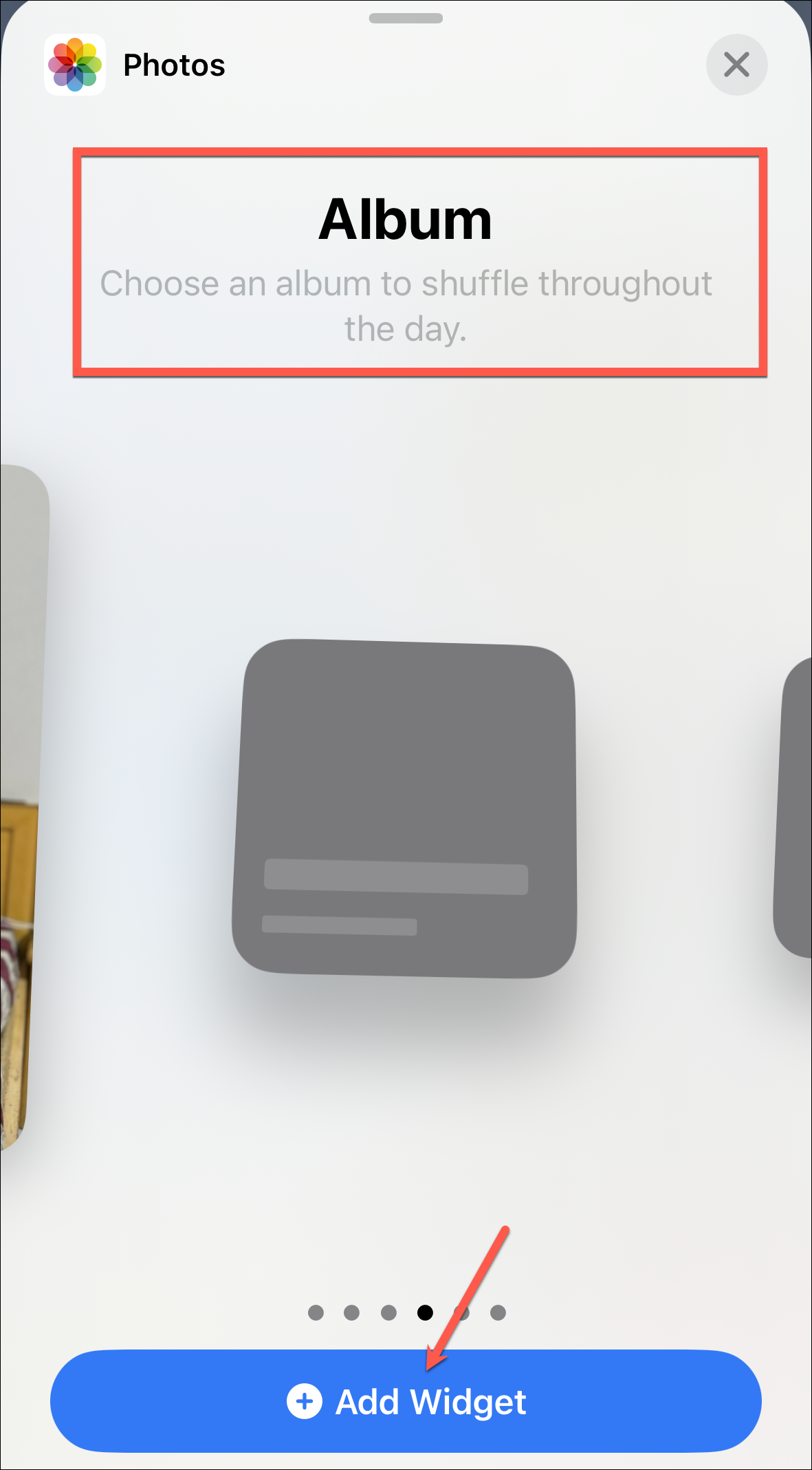Photos album widget. Now you can choose a particular album from your Photos app to display it in the Photos widget.