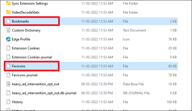 Once you reach the Default folder, scroll down until you find the ‘Bookmarks’ file.