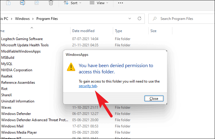 Finally, double-click on the ‘WindowsApps’ folder, and it will now open up like a regular folder.