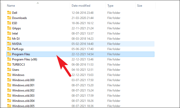 Next, locate the ‘Program Files’ folder from the list and double-click on it to open.