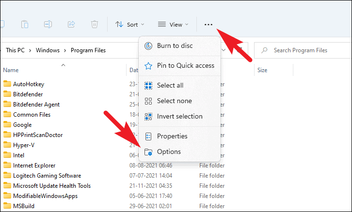 After that, from the ribbon menu of the window, click on the ellipsis icon (three horizontal dots). Then, click on the ‘Options’ option from the context menu. This will open a separate window on your screen.
