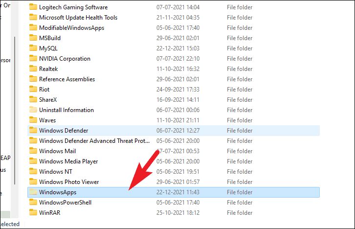 After that locate the ‘WindowsApps’ folder and double-click on it to continue.