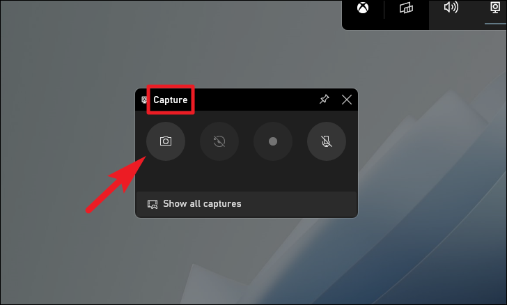 Then, locate the ‘Capture’ window on your screen and click on the ‘Camera’ icon present on the overlay window to take a screenshot. Alternatively, you can also press the Windows + Alt + G keys together on your keyboard to quickly take a full-screen screenshot.