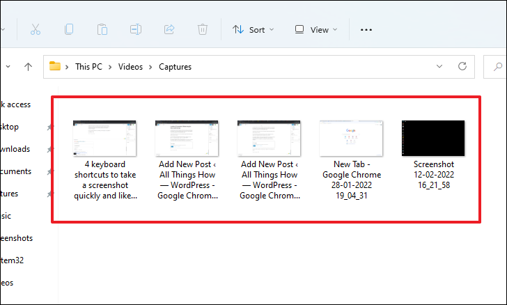 Now, you will be able to see all the screenshots you clicked using the PrtScr / Windows + PrtScr keyboard shortcut.