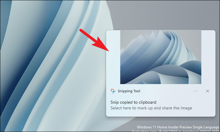 Once you have clicked the screenshot using your preferred option, you will be able to see a notification tile in the bottom right section of your screen with the thumbnail of the said screenshot stating that it has been copied to the clipboard. You can now either click on the notification tile to open the screenshot in a Snipping Tool window.