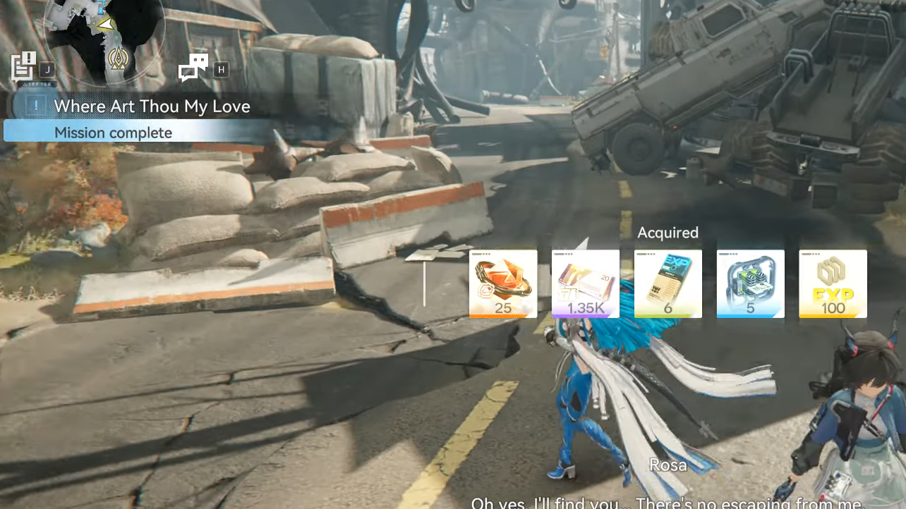 Once Rosa departs and the reward screen appears, Where Art Thou My Love is fully complete. From there, you can move on to other Exploration Missions in Valley IV, continue the main story, or expand your AIC network using the Relay Towers you placed for this mission.