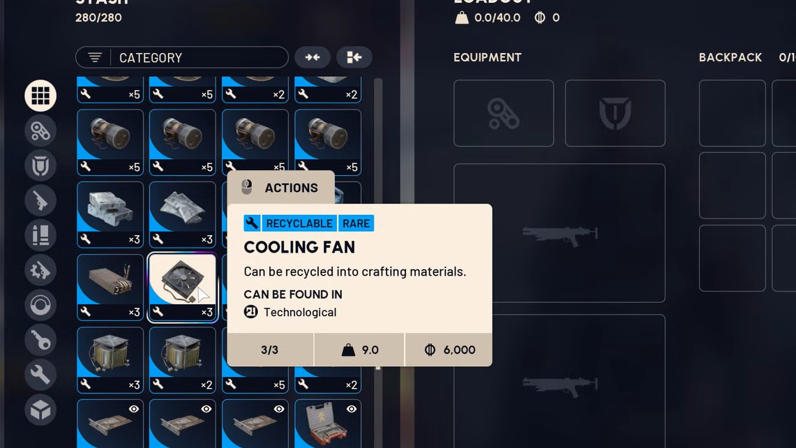 Cooling Fan is a rare, recyclable Technological item in Arc Raiders. It weighs 3.0kg, sells for $2000, can’t be crafted, and is commonly chased because Expedition Projects require five of them for Core Systems.