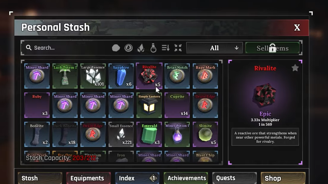 Luck directly affects your chances of landing rare ore rolls, including Rivalite. Players commonly use luck boosts before settling into a farming loop, especially when targeting low-probability drops like 1/569.