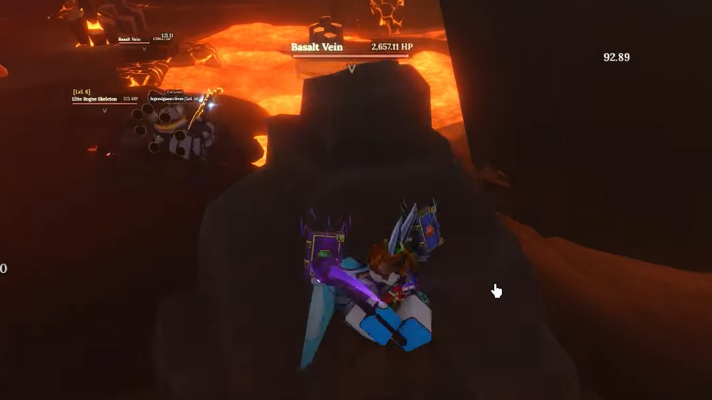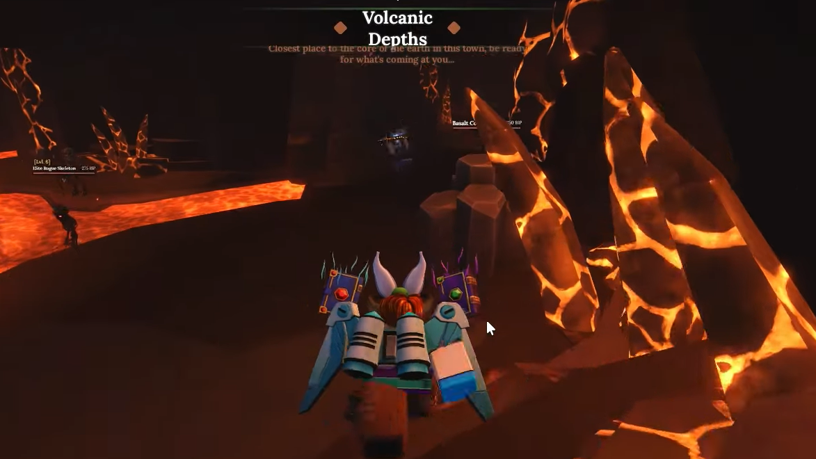 You’re looking for two targets: Basalt Veins and Volcanic Rock. Both appear in the Forgotten Kingdom, including the Volcanic Depths area, where you can consistently find these rock types clustered together.