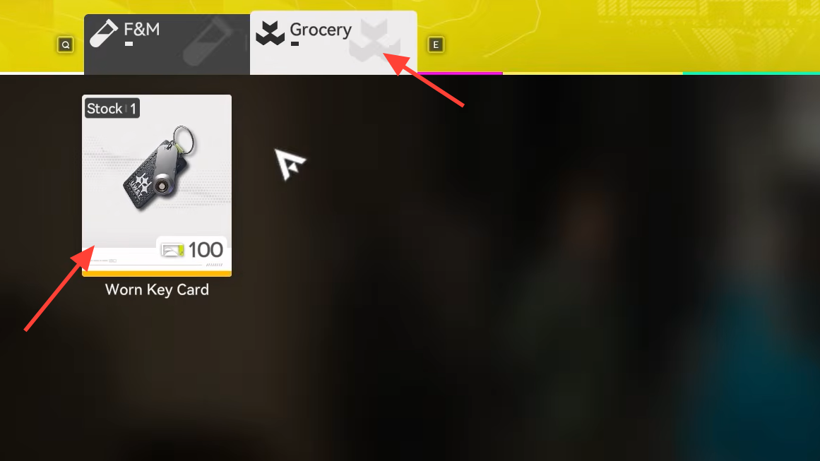 Step 3: Open Lonnard’s shop and switch to the Grocery category. The Worn Keycard is listed there as a 5★ mission item and costs 100 Stock Bills.