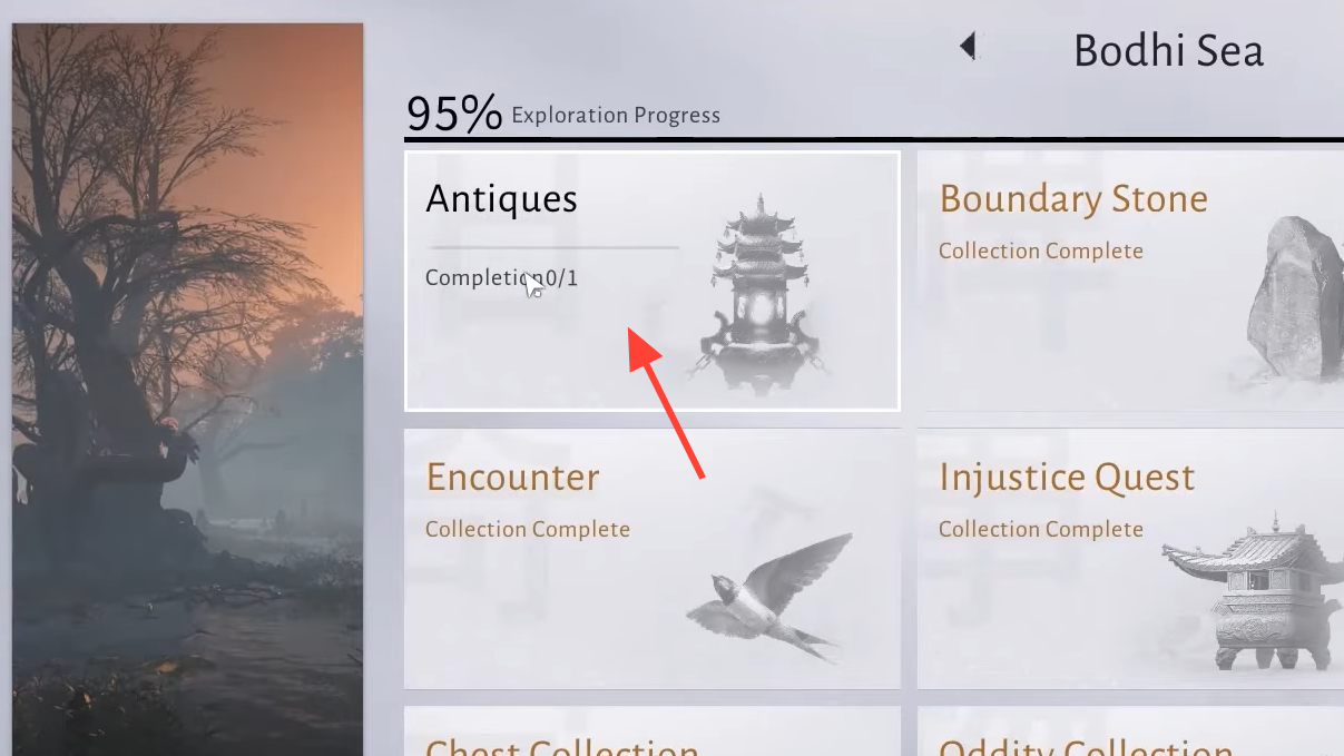 Antiques are unique items tied to specific sub‑regions of Qinghe. They’re tracked in the regional “Antiques” section of the Journal and in your inventory under the Traceable filter.