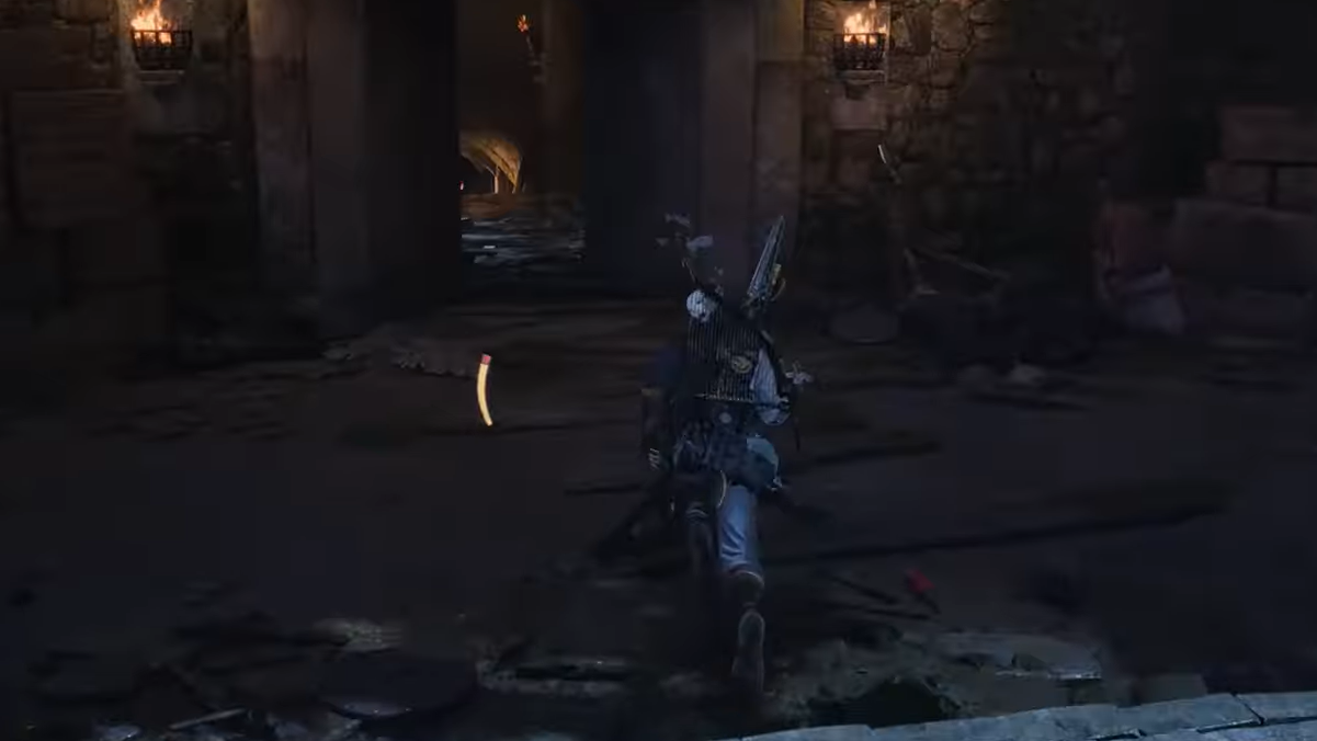 Step 6: Equip the new cosmetic from your appearance menu to add an extra sword or spear to your character’s back.