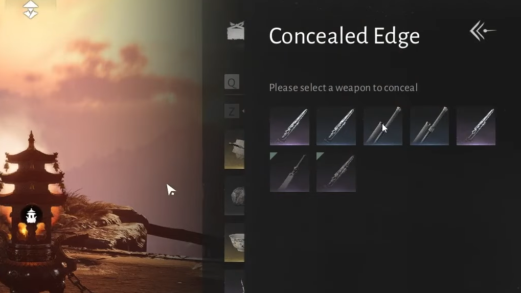 - The target weapon must be un‑equipped and meet the tier requirement shown when you use Concealed Edge. Players using Qinghe cosmetics typically rely on tier 31 blue‑grade weapons.