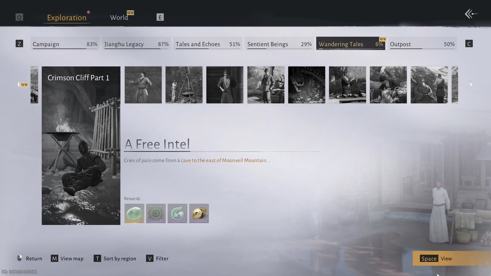 In the Qinghe region, “Crimson Cliff Part 1 – A Free Intel” sits under the Wandering Tales category. It is one of a long chain of optional stories that flesh out the region around Heaven’s Pier, Harvestfall Village, Mercyheart Town, and other landmarks. Completing it is not required to move the main story forward, but it contributes to overall exploration progress and Qinghe’s Wandering Tales completion.