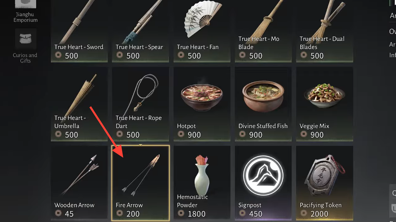 | Xiong Da, Peddler | Heaven's Pier in Qinghe | 99 Fire Arrows | 200 Coins each (19,800 Coins for full stock) | Daily reset |