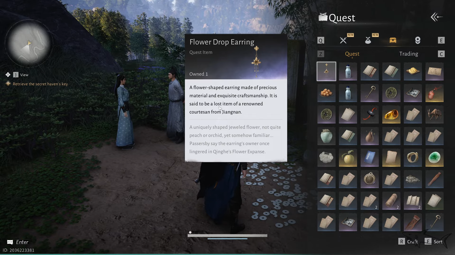 Step 2: Make sure you have not already picked up and turned in the earring earlier. Once the courtesan caravan has been spawned and used, the earring will not appear again. If you remember talking to a courtesan in a carriage in Flower Expanse before, the trigger is already consumed.