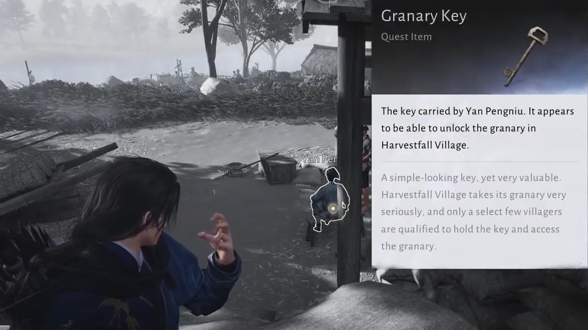 Step 2: Steal the granary key from the same NPC (Yan Pengniu) using Celestial Seas, then unlock the village granary.