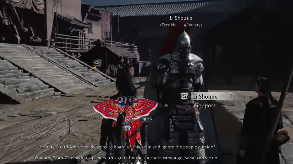 Step 2: Investigate the argument outside the Ever-Normal Granary. The guards will refuse you entry and direct you to seek permission from Lord Shen.