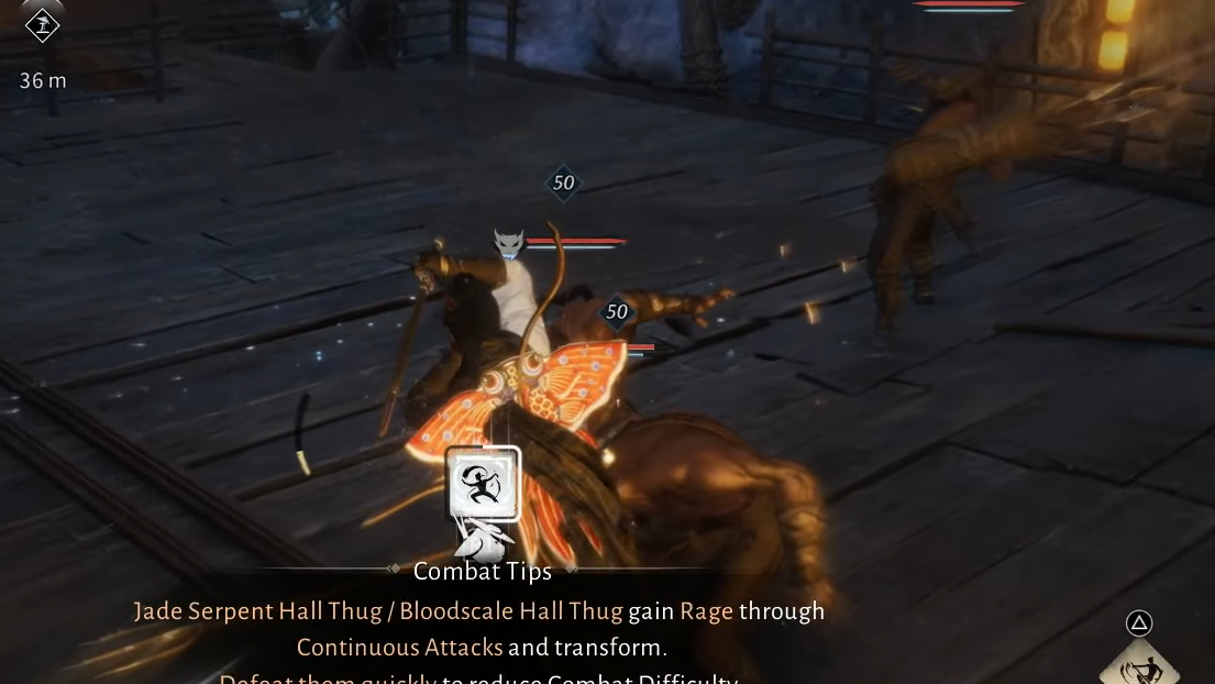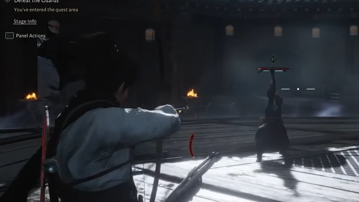 - Attack pattern: In the first phase, Zheng uses a fan attack that glows red and is difficult to parry reliably.