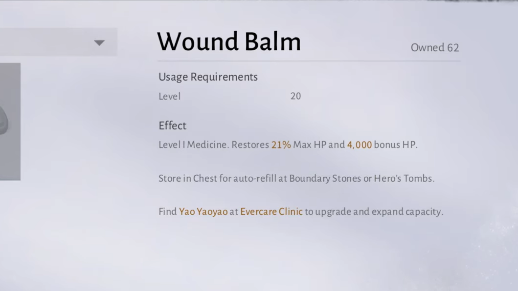 Once your Medicine Chest reaches Rank 11 and you have a steady Wound Balm crafting routine, running dry on potions becomes much rarer. The limiting factor shifts from item count to how efficiently you manage charges during each fight, which is where good deflect timing and careful positioning start to matter more than raw healing output.