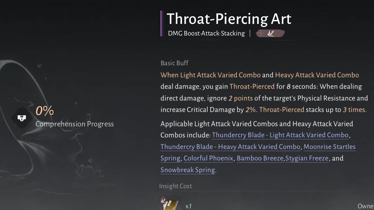 | Throatpiercing Art | Sparrow Sutra Hall area (western map) — clear all 17 birds across four levels, interact with the mirror, defeat the bird boss, then interact with the spot to the boss's left |