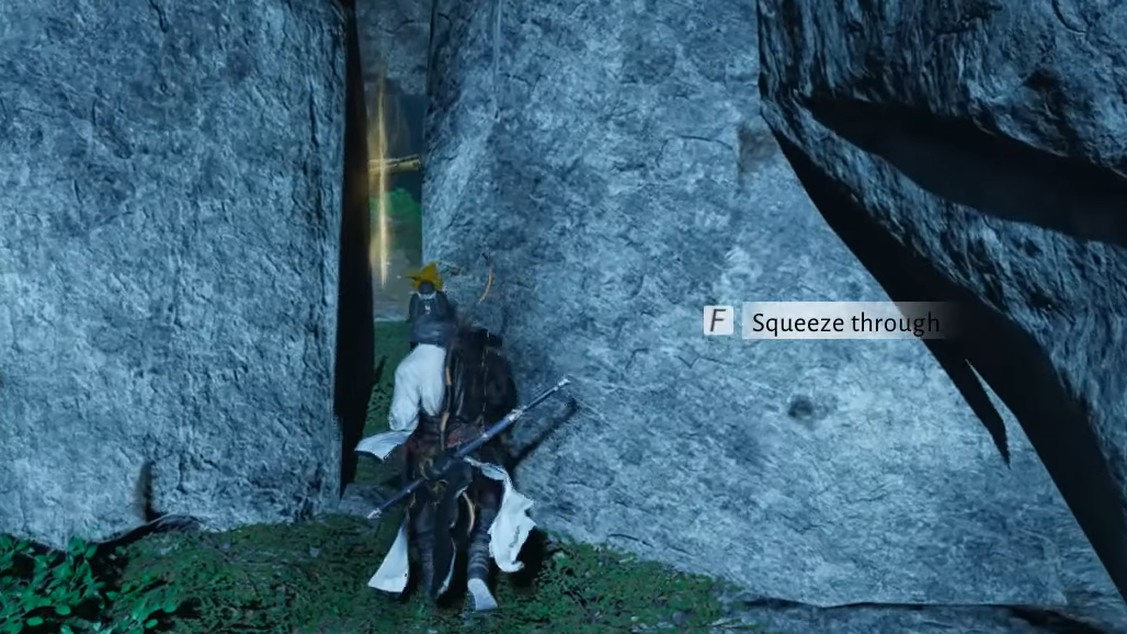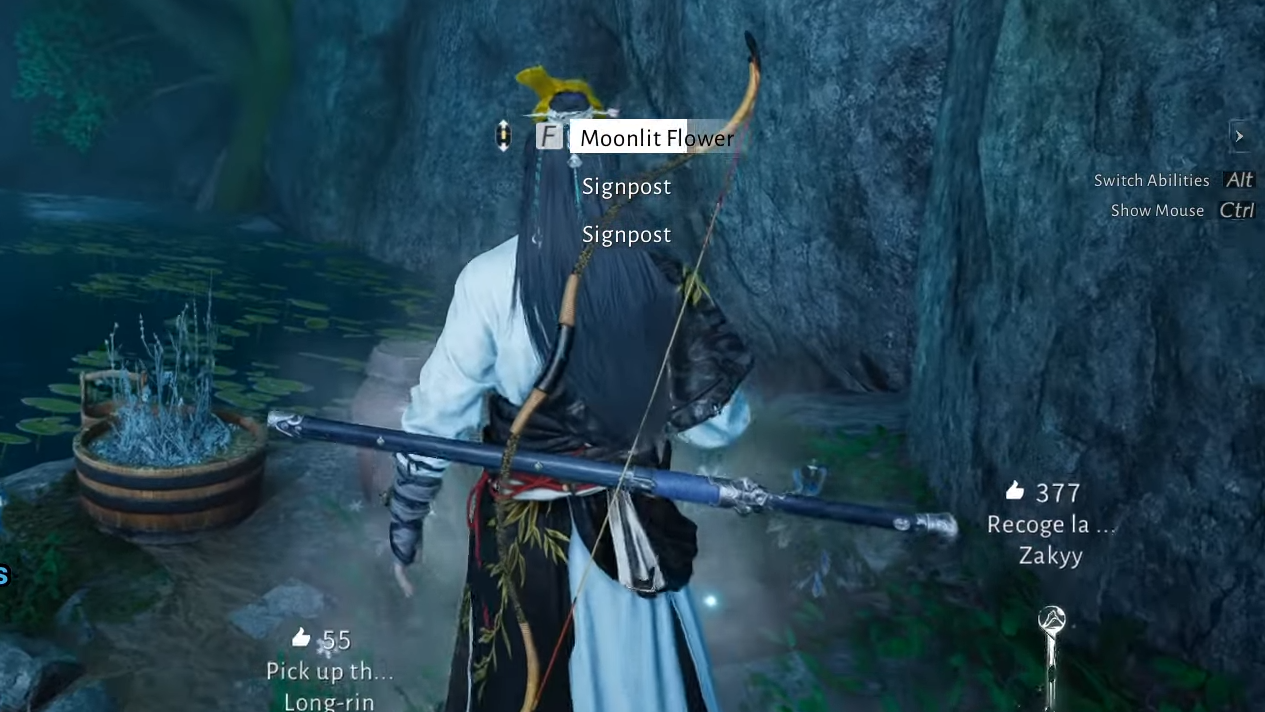 Step 2: Look for a single Moonlit Flower that glows more brightly than the surrounding foliage. This flower resembles the blue blossoms that previously caused temporary blindness in the cave leading to the bell puzzle.