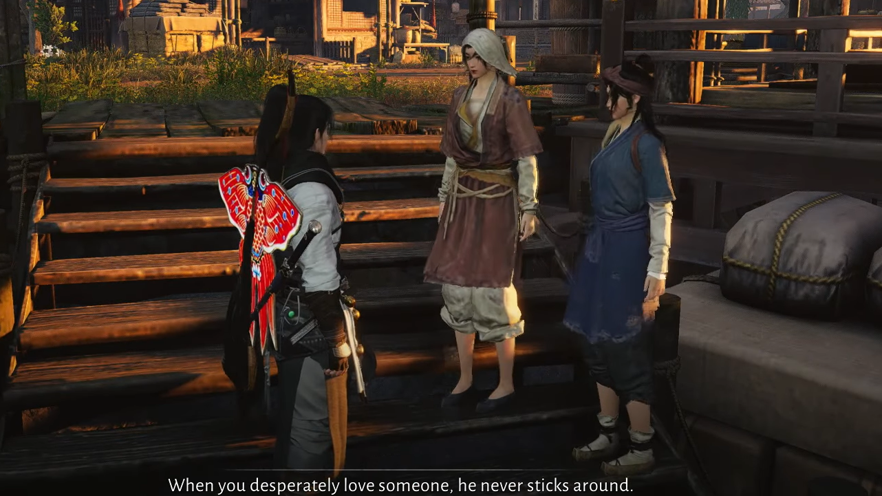 A Tearless Farewell is a short side quest tied into the broader One Leaf, One Life: Phase III quest line. It takes place at Tianjing Dock in South Gate Avenue. There, you meet Zhong Wenping, a man sitting alone on the dock, with two gossiping women standing on the stairs behind him.