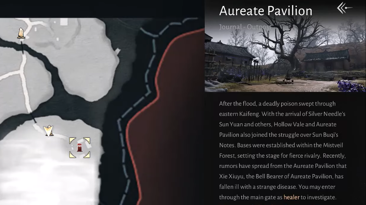 Aureate Pavilion in Where Winds Meet is an enemy-controlled outpost buried in the fog of Mistveil Forest, and it becomes a key stop once quests start asking you to “search for the pavilion” or to obtain the local cure item tied to Ephemeral Blight. The game does not clearly mark the route if you have not unlocked the nearby outpost, which makes this location easy to miss.