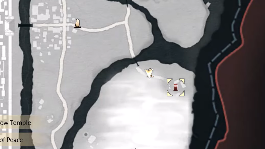 Step 1: Open the map and locate the red enemy outpost icon in the northeastern corner of Mistveil Forest. Set a marker on the outpost so you can track the direction on your compass while visibility is low.