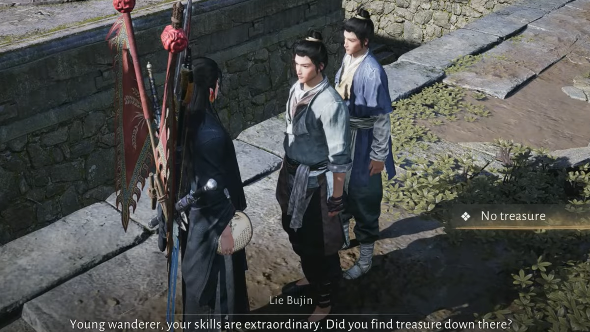 Step 2: After completing that legacy, return to the entrance of Northern Vow Ruins, by Bamboo Abode. The two Lie brothers will be standing near the lowered stairs. Let their conversation play out, then talk to both of them and show them the result of the dungeon run (the “Northern Vow” outcome).