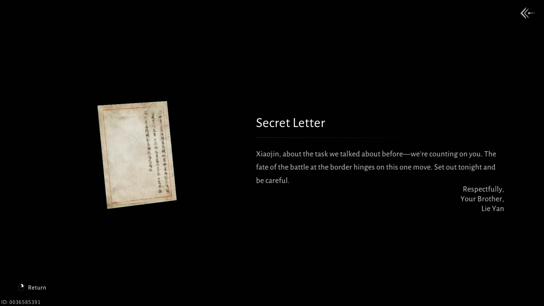 Step 2: The farmer hands over Cui Xiaojin’s Secret Letter, a note from Lie Yan that entrusted Xiaojin with a crucial mission to defend a pass under cover of night. The letter suggests that Xiaojin was carrying out an important task rather than fleeing.