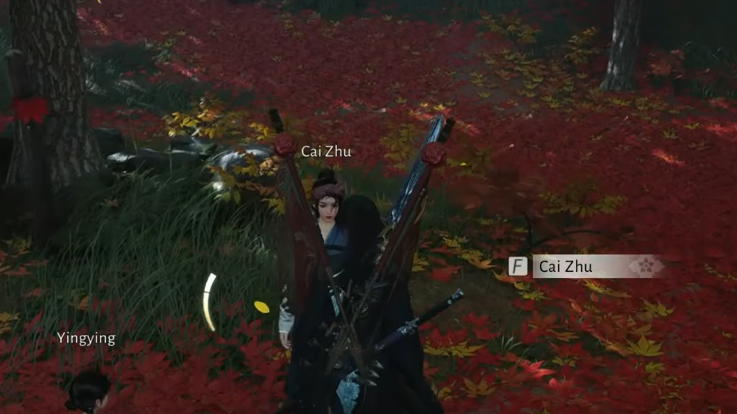 Step 1: Travel to Crimson Cliff. Look under the maple trees in the area; there you will find the farmer’s wife, Cai Zhu, and their daughter, Yingying, waiting for him to return.