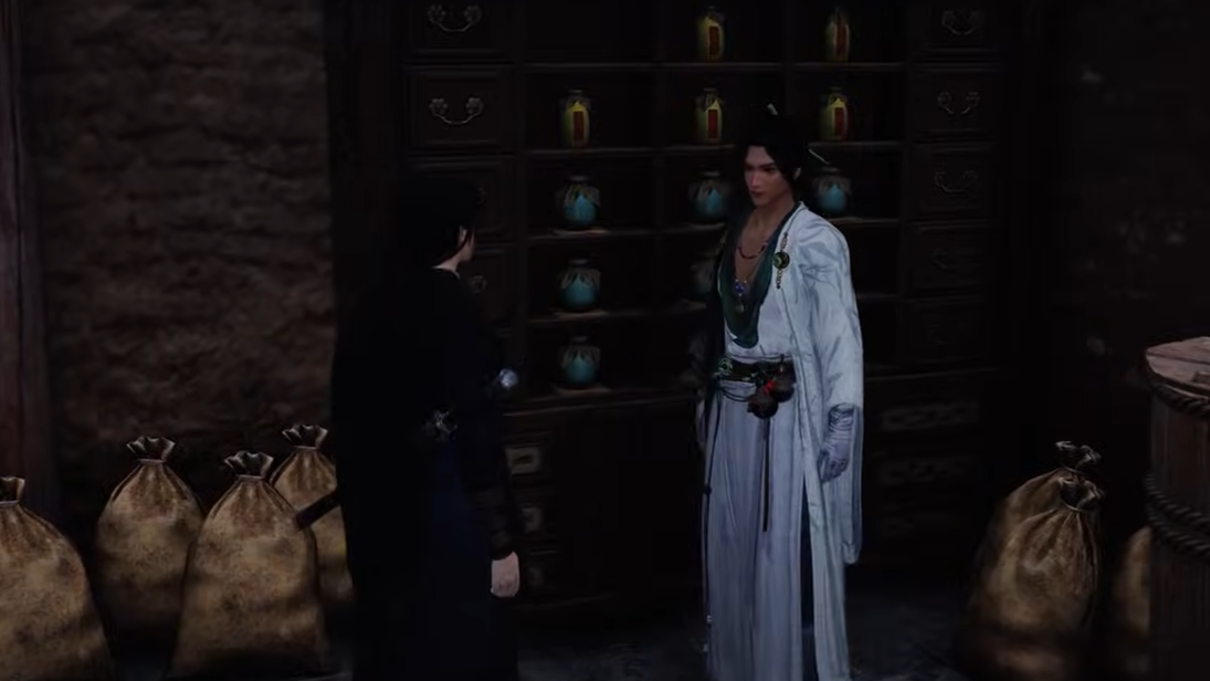 Step 2: After you wake up in the Wishing Cove, look beside the bed and pick up the jade pendant lying on the floor. Speak with Zhai Xu to ask about the pendant and the poisonous mist that fills Mistveil Forest.