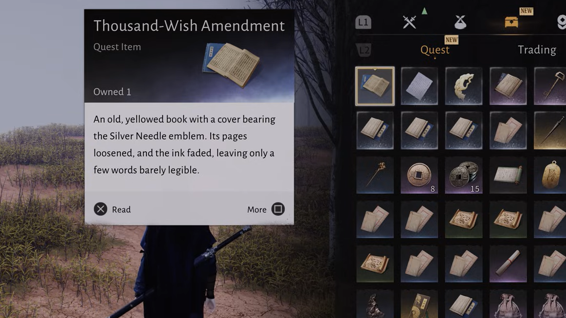 Step 6: Leave the Wishing Cove house to exit the small cove area. Outside, open your Bag (B), switch to the quest items tab, and read the Thousand-Wish Amendment. Its contents reveal that three cures are needed to lift the fog over Mistveil Forest: Wishing Cove (already obtained), Hollow Abode, and Aureate Pavilion, along with hints to their locations.